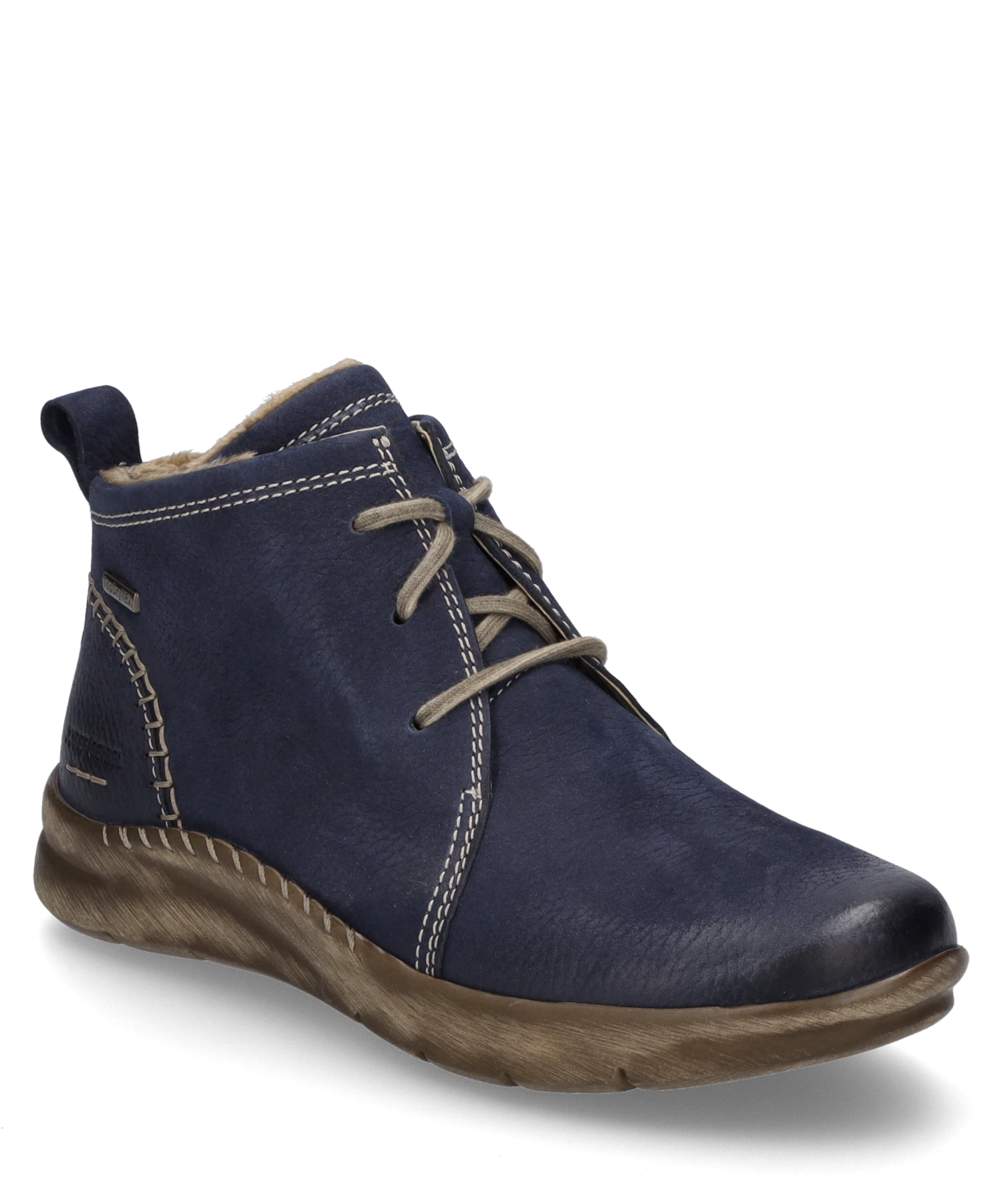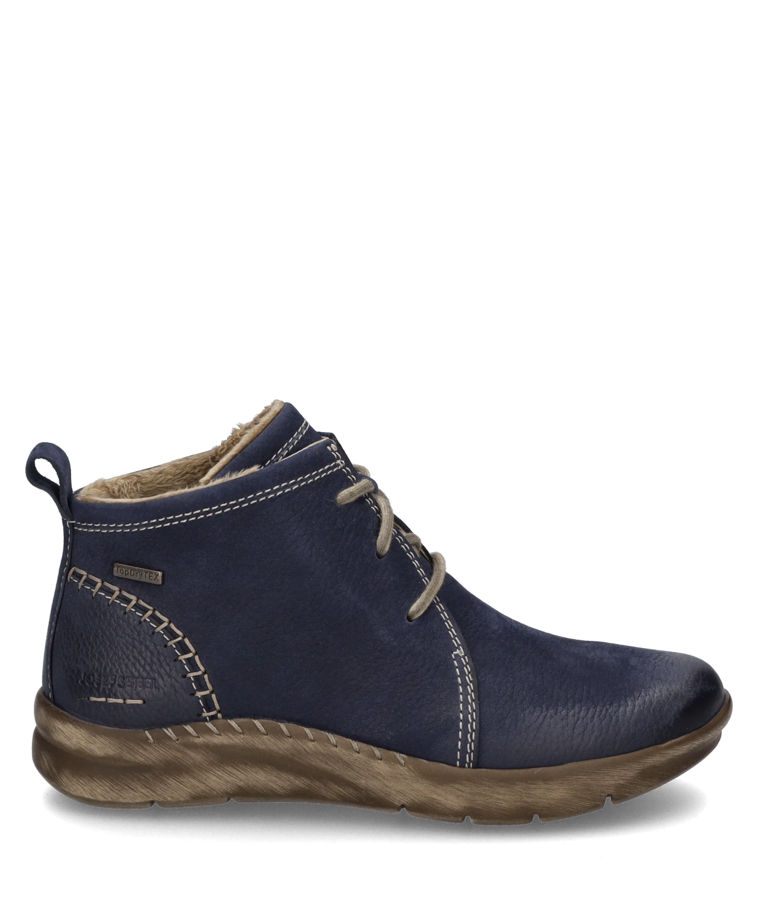 Wir fertigen diese Stiefelette für Dich aus feinem Nubuk-Leder. Für wohltuend warme Füße im Herbst ist die Stiefelette mit weichem Textil warm gefüttert. Die komfortable Schnürung gibt dem Fuß beim Gehen guten Halt. Mit der wasserabweisenden TopDryTex-Technologie bleiben Deine Füße bei Regen und Schnee trocken. Die herausnehmbare Sohle kannst Du im Handumdrehen wechseln und so Deine eigenen Einlegesohlen verwenden. Die Fertigungsart Strobel sorgt für ein sehr sportives Laufgefühl. Aufgrund der Schuhweite G empfehlen wir unsere Conny 56 besonders für den normalen Fuß. Besonders in der Freizeit – mit unserem alltagstauglichen Begleiter findest Du Deinen Weg!