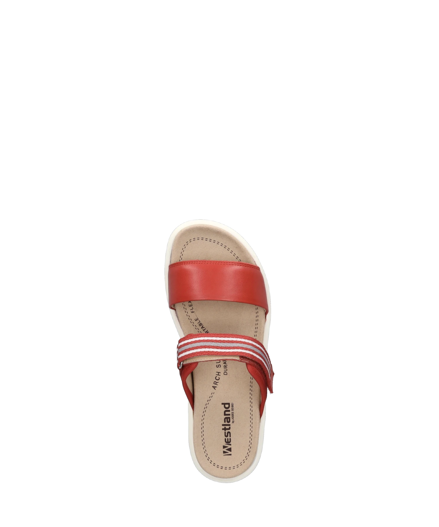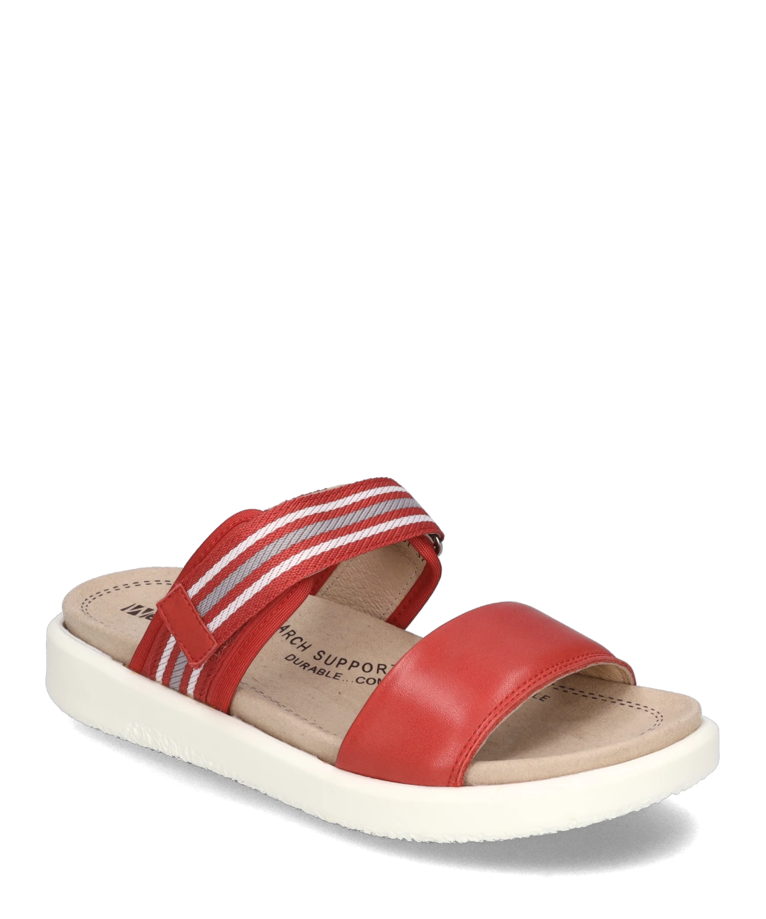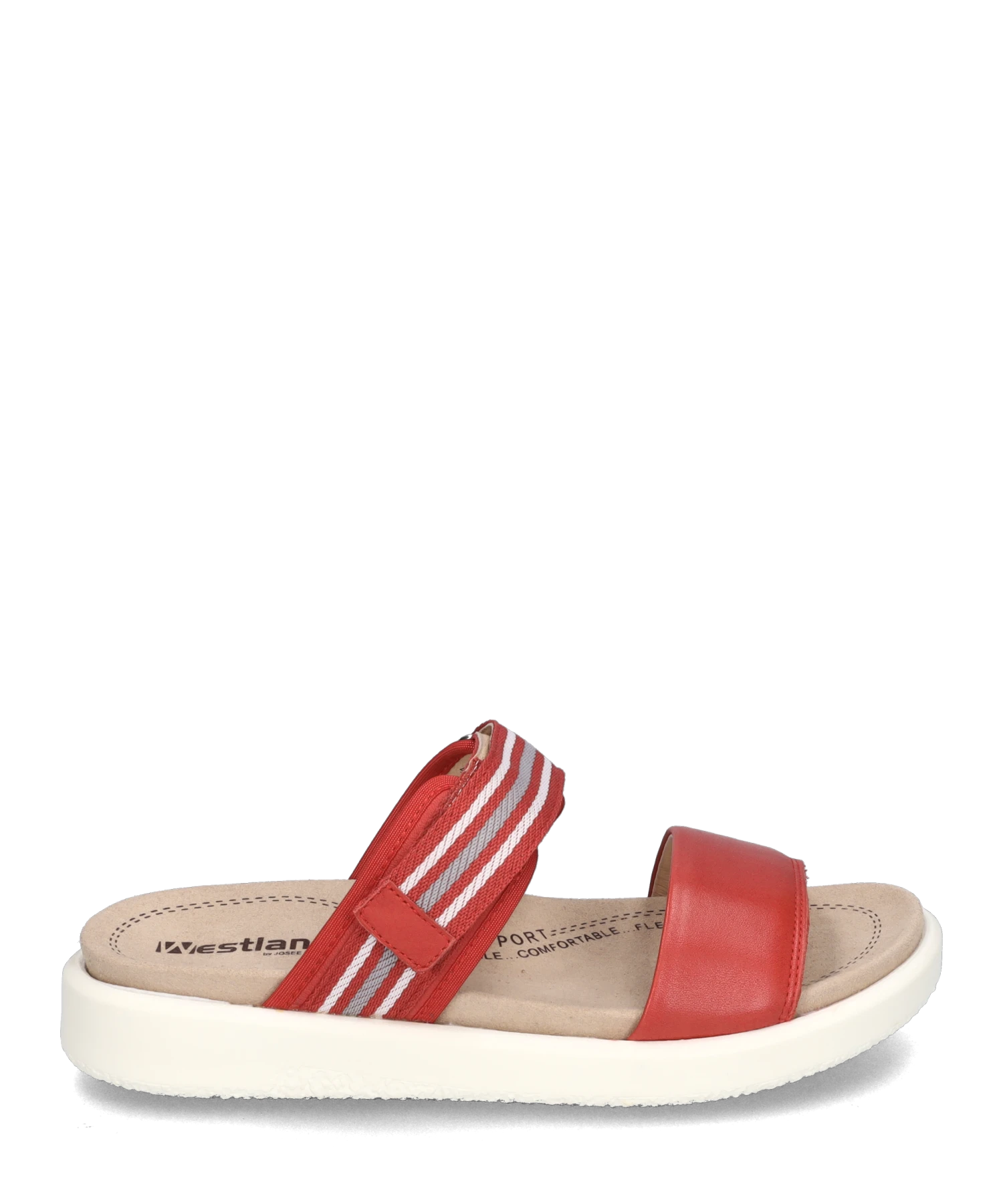 Im Frühling und Sommer wirst Du Dich in diese rote Damen-Sandale aus einem hochwertigen Textilstoff verlieben. Mit dem Wissen aus 5 Generationen wählen wir Materialien und Funktionalitäten sorgsam aus. Für diesen Schuh verwenden wir geschmeidiges Nappa-Leder. Der Klettverschluss bietet einen guten Halt und einen einfachen Einstieg in den Schuh. Ausgestattet ist Albi 04 zudem mit einem herausnehmbaren Wechselfußbett aus Mikrofaser. Die Machart AGO hat sich bei JOSEF SEIBEL bewährt, um nicht nur leichte, sondern auch langlebige Schuhe zu fertigen. Mit der Normalschuhweite G ist die Sandale Albi 04 ideal geschnitten. Diese rote Sandale gibt Dir die Freiheit – Deinen Weg zu gehen.